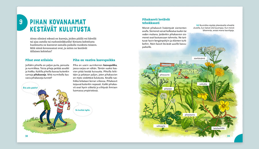 Designing inner pages visual look suitable for class degree and making it up. Textbooks for Environmental studies, Kustannusosakeyhtiö Otava
