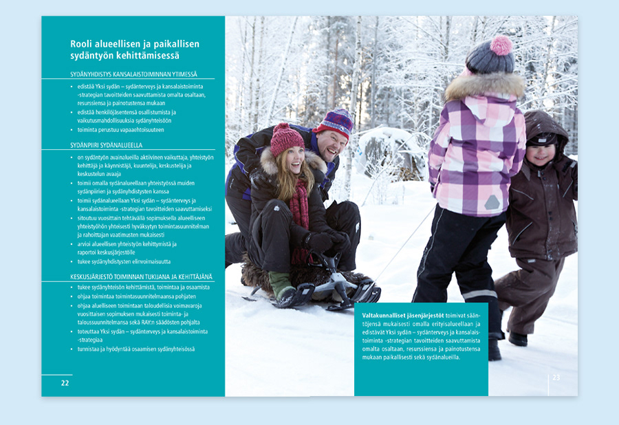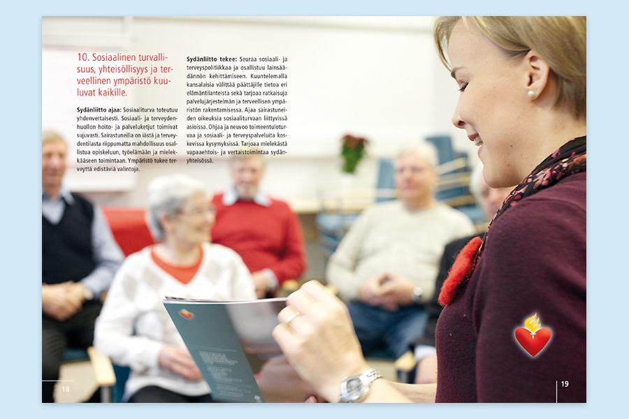 Reshaping layout and making it up. Brochure, Suomen Sydänliitto ry.